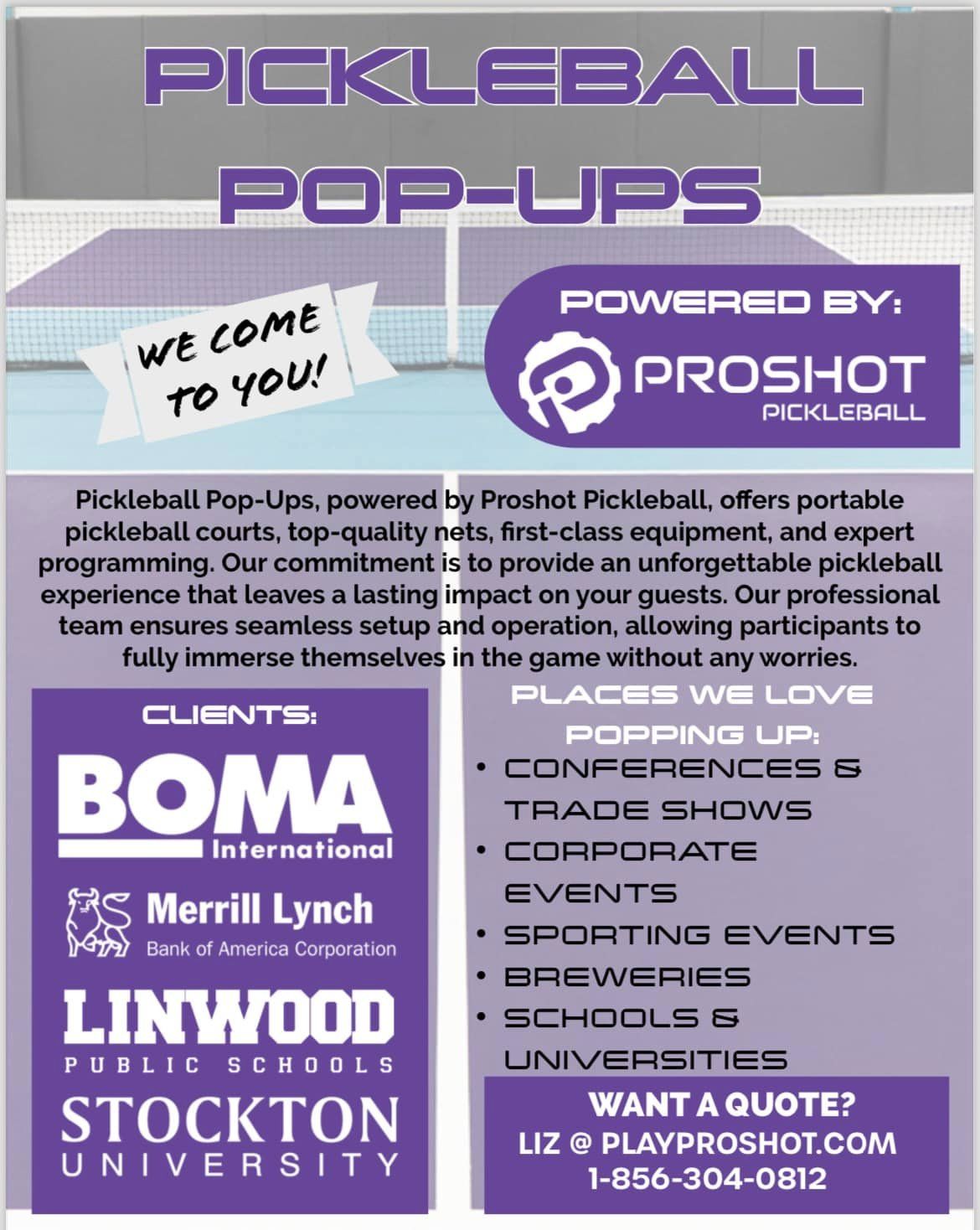 Proshot Pickleball brings the pickleball court to you!